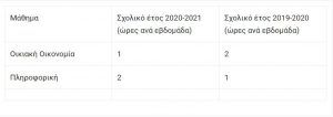 *Το μάθημα της Κοινωνιολογίας αντικαθίσταται από τα Λατινικά από το σχολικό έτος 2021-2022.