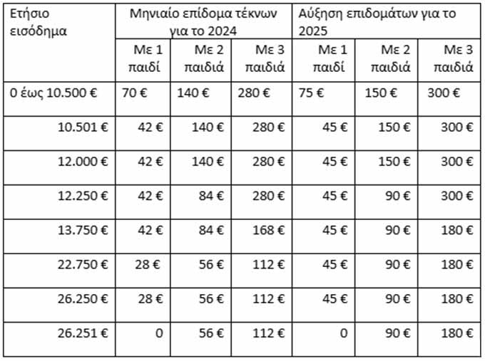 Πόσο αυξάνονται τα επιδόματα παιδιού από 1/1/2025