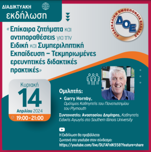 Εισηγητής: Garry Hornby, Ομότιμος Καθηγητής Ειδικής Εκπαίδευσης του Πανεπιστημίου του Plymouth