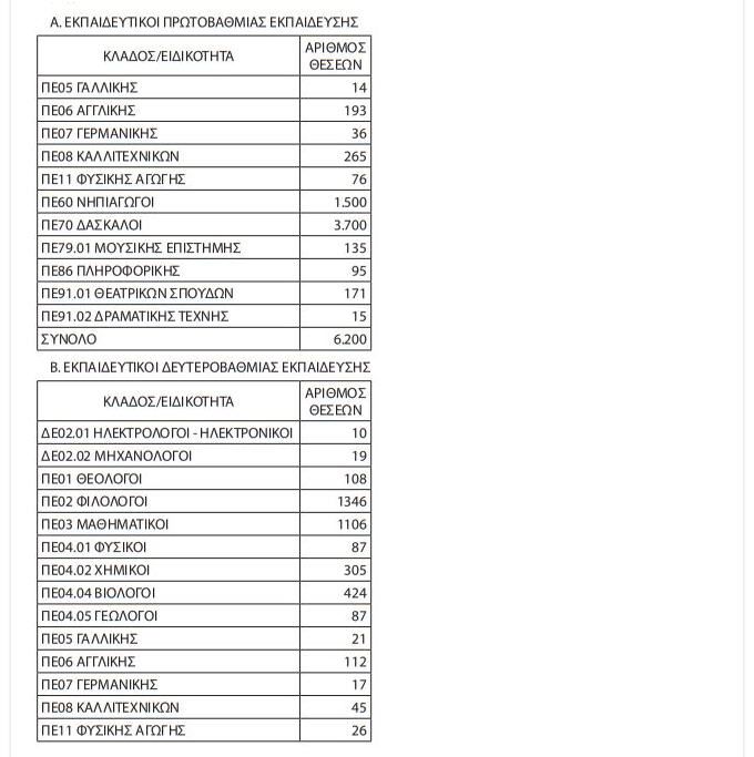 Δημοσιεύθηκε το ΦΕΚ με το οποίο καθορίζεται η κατανομή κατά κλάδο και ειδικότητα ή ειδίκευση τον αριθμό των κενών θέσεων που πρόκειται να καλυφθούν με τον διορισμό μόνιμων εκπαιδευτικών στην Πρωτοβάθμια και Δευτεροβάθμια Εκπαίδευση, του σχολικού έτους 2020-2021.