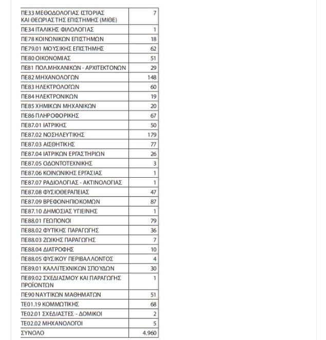 Αναλυτικά η κατανομή κατά κλάδο και ειδικότητα: