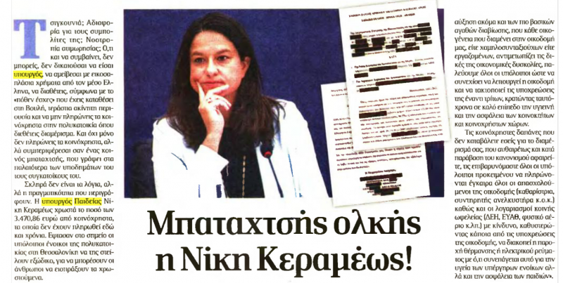 Θυμίζουμε ότι σύμφωνα με σημερινό δημοσίευμα της εφημερίδας «δημοκρατία», η υπουργός Παιδείας Νίκη Κεραμέως φέρεται να χρωστά το ποσό των 3.470,86 ευρώ από κοινόχρηστα, τα οποία δεν έχουν πληρωθεί εδώ και χρόνια.
