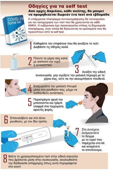 Οδηγίες για το πώς θα γίνονται τα self test στο σπίτι.