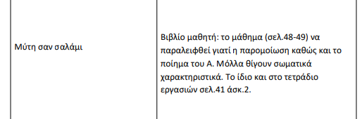 Στο βιβλίο της Γλώσσας της Α’ Δημοτικού το μάθημα ” Μύτη σαν Σαλάμι” (σελ.48-49) έχει παραλειφθεί γιατί σύμφωνα με τις οδηγίες του ΙΕΠ η παρομοίωση καθώς και το ποίημα του Α. Μόλλα θίγουν σωματικά χαρακτηριστικά ( ρατσισμός). Η φιγούρα στο Θέατρο Σκιών είναι του Μορφονιού που είναι μικρόσωμος με πελώριο κεφάλι και μακριά, μύτη.